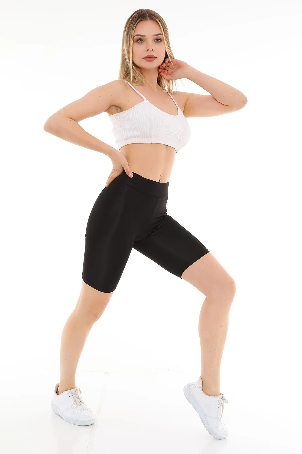 Yeni sezon sporcu bayanların tercihi parlak biker tayt modelidir. Esnekliği ve vücudu tam sarmasıyla şık bir görünüm kazandırır.