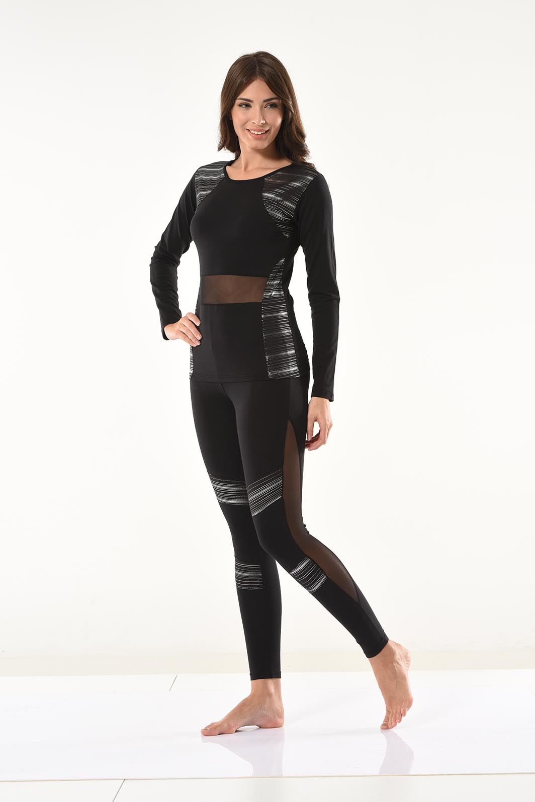 Tül transparan detaylarıyla göz kamaştıran yeni sezon çok şık modelli tayt takım modelidir.