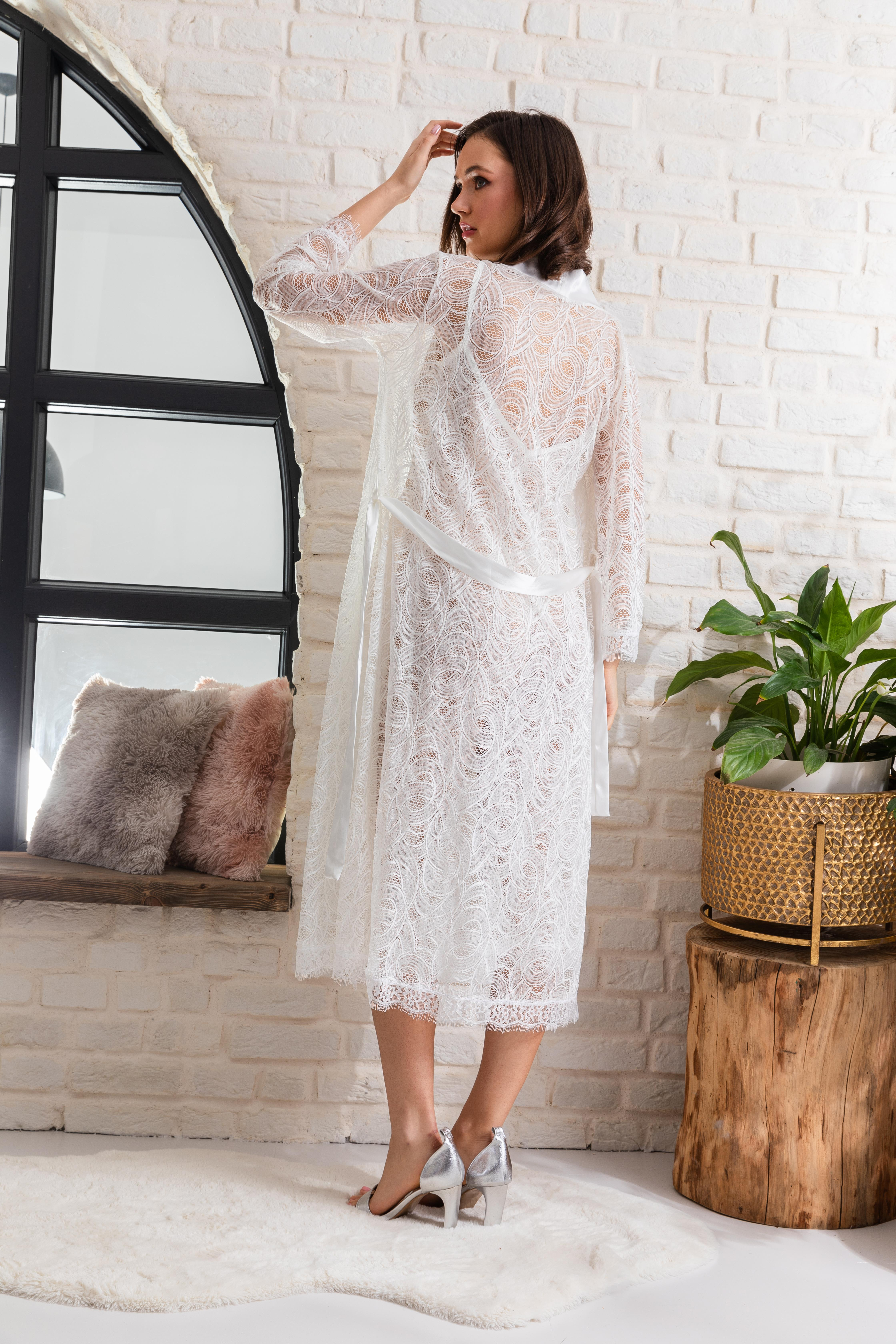GELİN SET TRANSPARAN MİDİ BOY KUŞAKLI SABAHLIK EKRU (MGP12176)