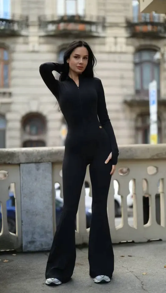 Kadın Uzun Kollu Balıkçı Yaka Fermuar Detay Ispanyol Paça Tulum