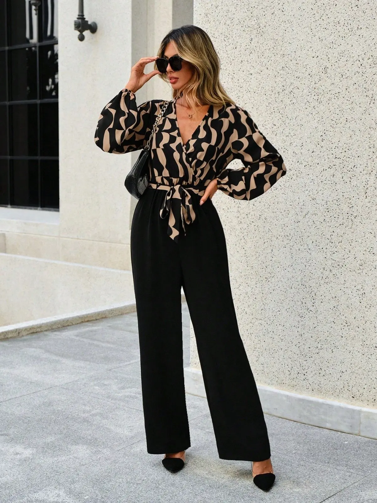 Kadın Uzun Kollu Kruvaze Yakalı Belden Kuşaklı üst Dalgıç Alt Ithal Krep Tulum
