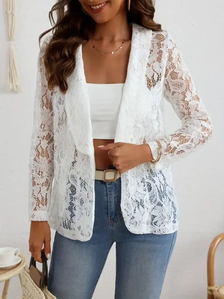 Kadın Uzun Kollu Yakalı önü Açık Dantelli Ceket