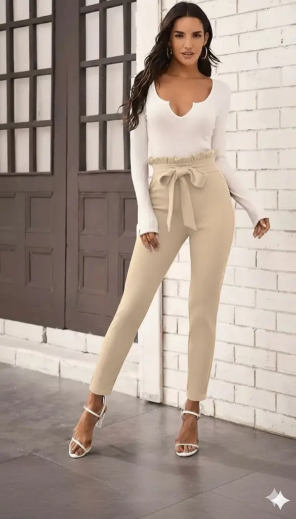 Kadın Yüksek Bel Beli Fırfırlı önden Bağlamalı Ithal Krep Pantolon