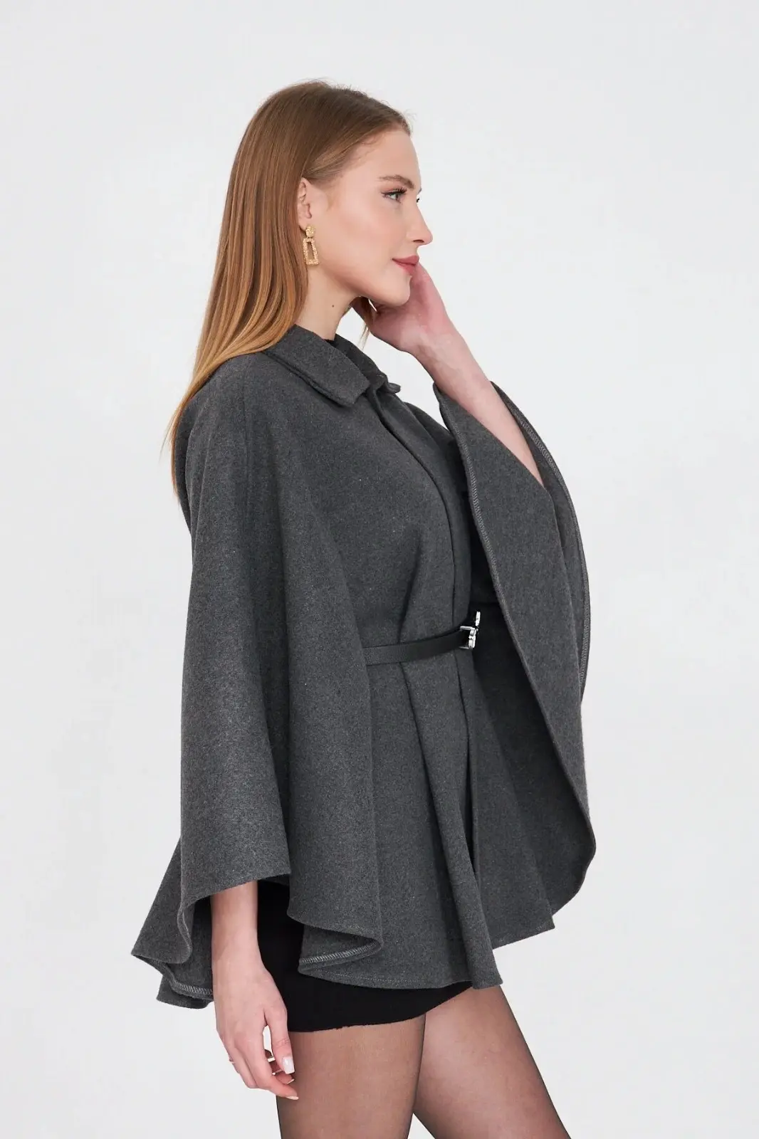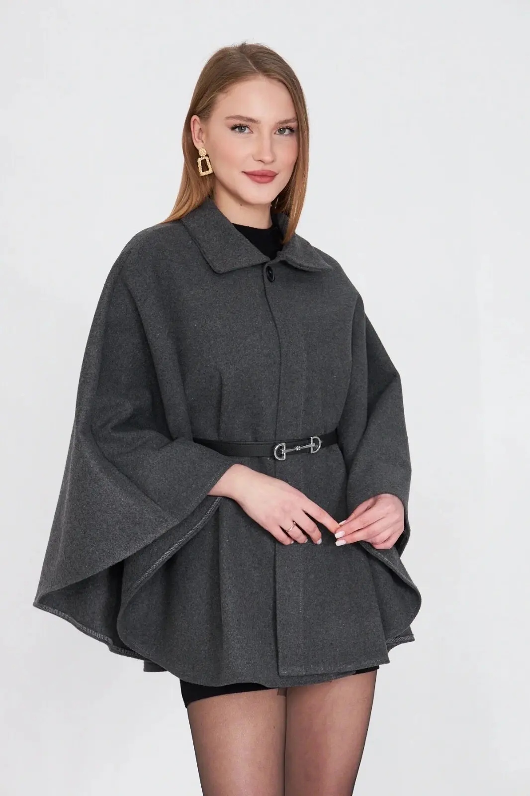 Kemerli kaşe panço antrasit pt