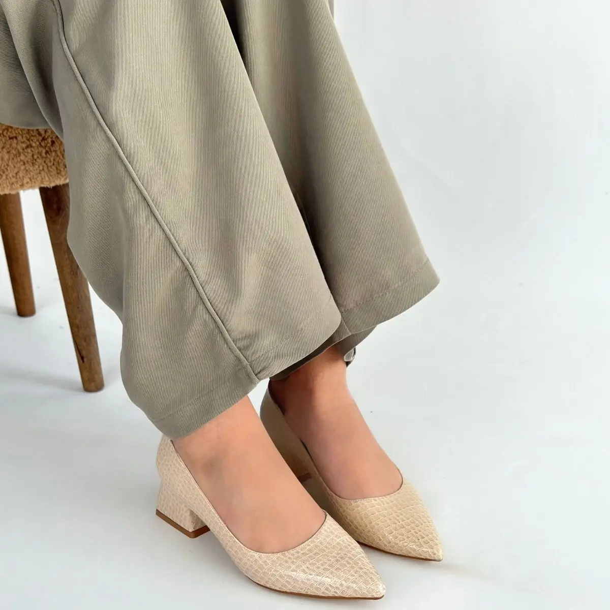 Meort Bej Rugan Topuklu Ayakkabı