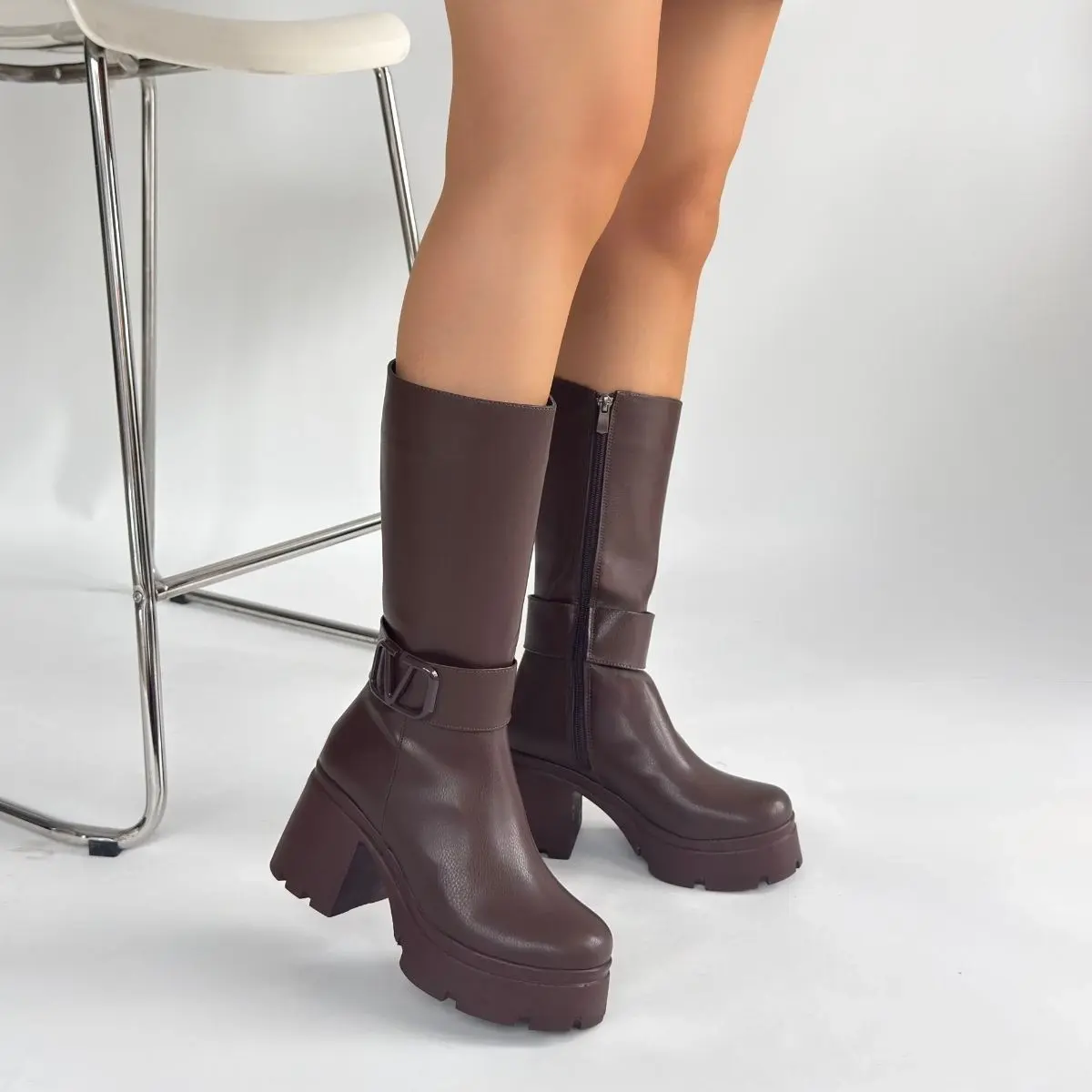 Moki Kahverengi Cilt Topuklu Çizme