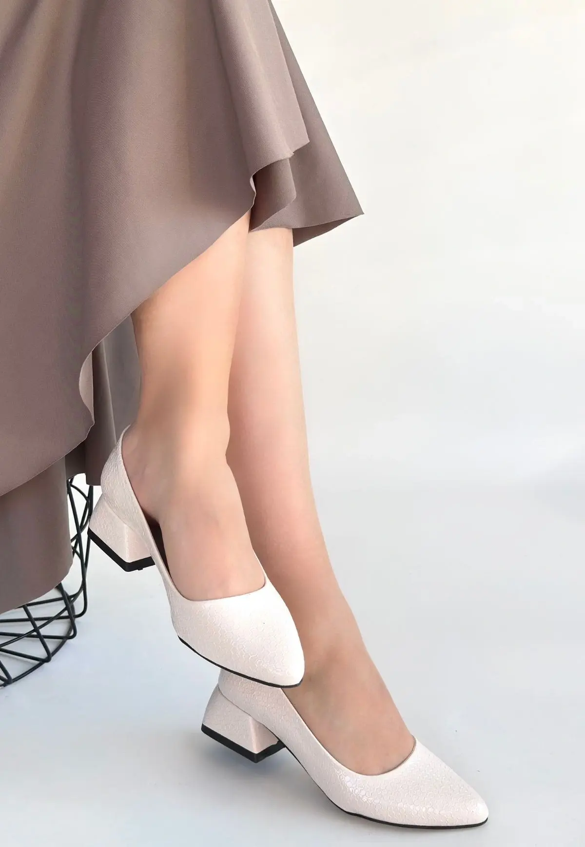 Nitya Bej Baskılı Rugan Topuklu Ayakkabı
