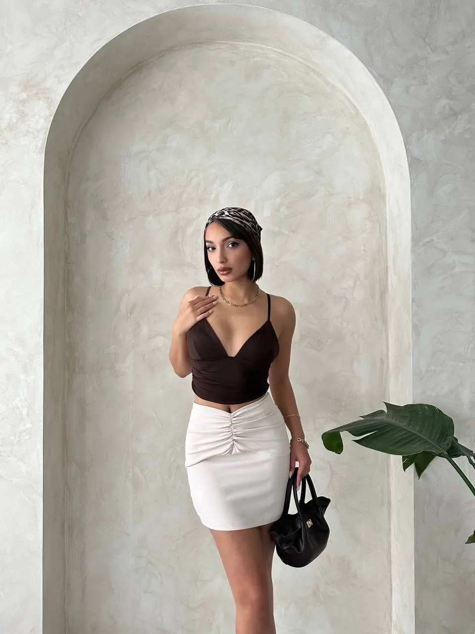 Önü büzgülü etek bej s24222