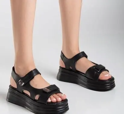 Saide Siyah Cilt Cırt Cırtlı Sandalet